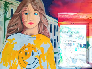 Após algumas conversas no Instagram, tive o gosto de receber a artista para uma visita introdutória aos abandonados e à arte urbana que se faz na Margem Sul. Como recompensa, pude fotografar, em primeira mão, a sua peça preferida (Hush).