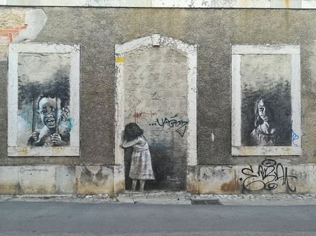 Are you trained in art? I have a full degree in Arts and, in parallel, I worked for a long time in advertising and animation. Thus, the product of my work is totally linked to the plastic and illustrative line. In addition to being an artist, you are a teacher. How do your students react to your works? I have been teaching since 2000, sometimes teaching in the school network, sometimes teaching in Cultural Centers and in my studio VOO DA ROSA. Students have always known that I am an artist and an art, painting and drawing teacher. They always followed my work, were always invited to my events and I believe they always noticed a difference in my classes because of that. I just have to thank them for their partnership in class and beyond. How many exhibitions have you done in Portugal and when will be the next one? I've done 7 exhibitions (between Belmonte, Sintra, Lisbon and Almada) and now I'm getting ready for the next “A VOZ DO OLHAR”, which will open on the 17th of July. This is first-hand information, soon the official invitation will come out on social networks. When did your attraction to the street began and you started using it as a backdrop of your works? In Bahia I already made my incursions, in a more timid way, in the sense of using walls indoors. This was the start to perceive this support as a strong vehicle to present my work. The good thing about this is being able to make art with adrenaline in your veins, with freedom, without paying for space, without having to please the gaze of gallery owners. The important thing is, yes, to please myself, which leads me to do it with such an authentic passion that it ends up pleasing those who are really destined for my work, the social invisibles, and who, by becoming visible on the walls, make them whoever is not so invisible will also notice and be enchanted by these works. I started exposing myself on public walls in 2017 here in Portugal, when I discovered several degraded areas with graffiti walls.