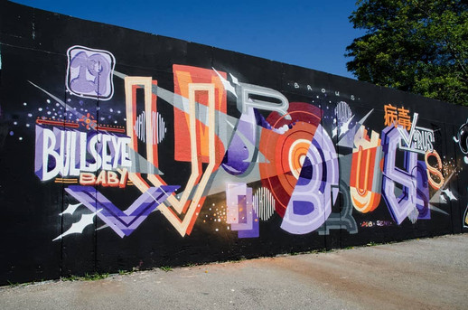 From classic graffiti writing to more graphic and abstract forms, his work is impressive and well placed, not fitting into the traditional horizontal formats of graffiti pieces.